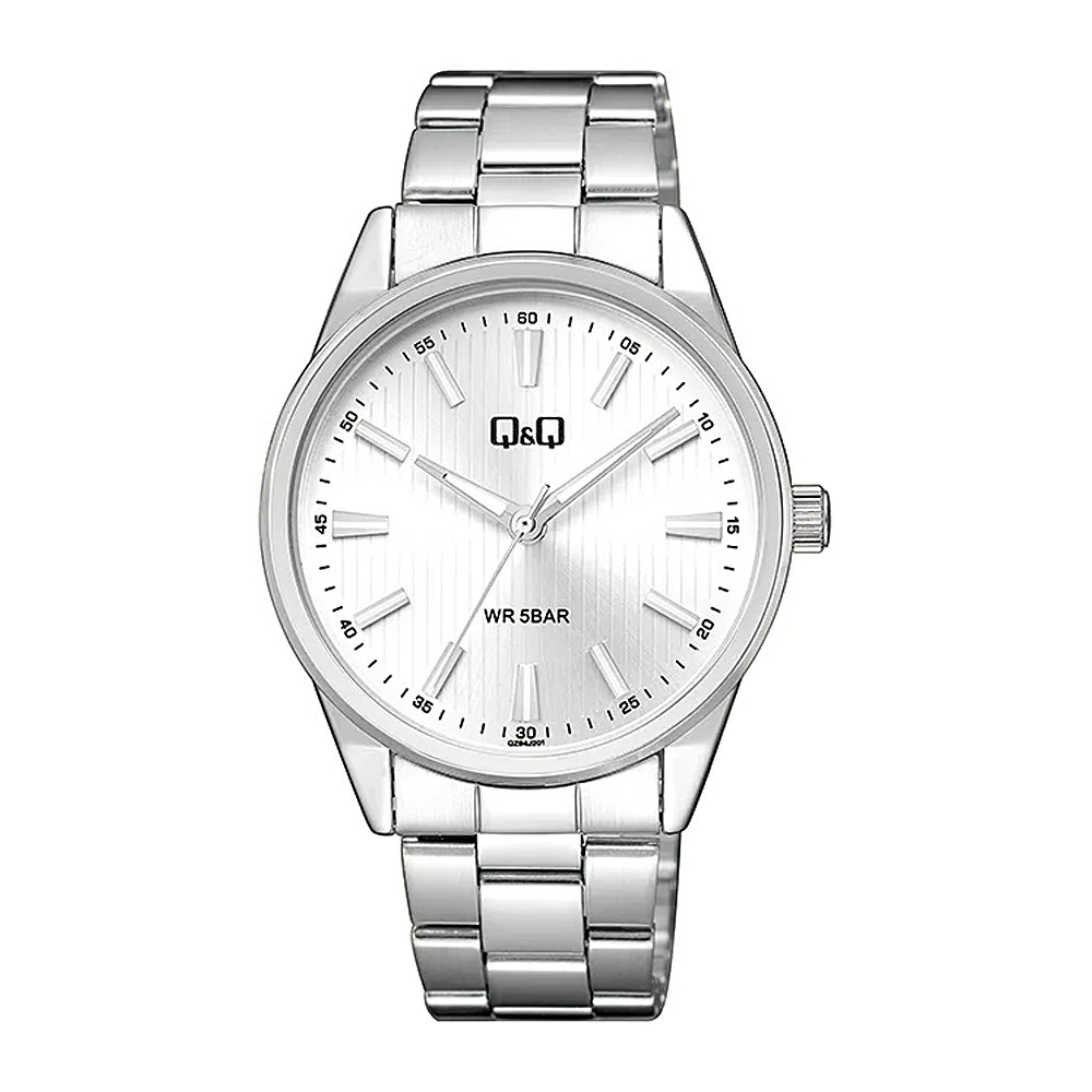 Q&Q férfi karóra, ezüst színű fémtok, ezüst színű nemesacél csat, ezüst színű számlap, QZ94J201Y