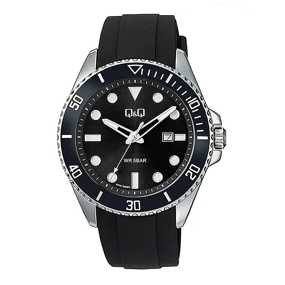 Válaszd a sportos eleganciát és a megbízható japán technológiát ezzel a karakteres Q&Q férfi karórával! Ezt a modellt a klasszikus búvárórák formavilága ihlette, ahol a masszív megjelenés kiváló leolvashatósággal és kényelmes viselettel párosul.