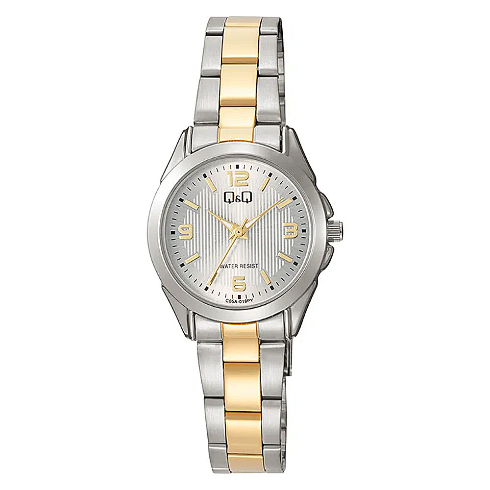 Q&Q női karóra, quartz, ezüst színű tok, bicolor színű fémcsat, ezüst számlap C05A-019PY