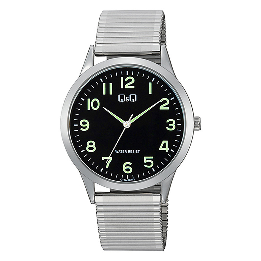 Q&Q férfi karóra, quartz, ezüst színű tok, ezüst színű rugóscsat, fekete számlap C10A-072PY