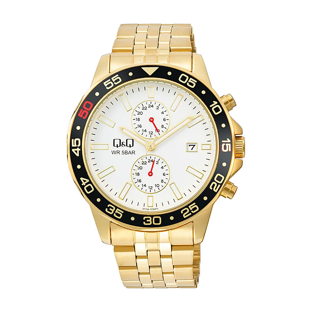 Q&Q férfi karóra, quartz, arany színű fémtok, arany színű fémcsat, fehér színű számlap A53A-004PY