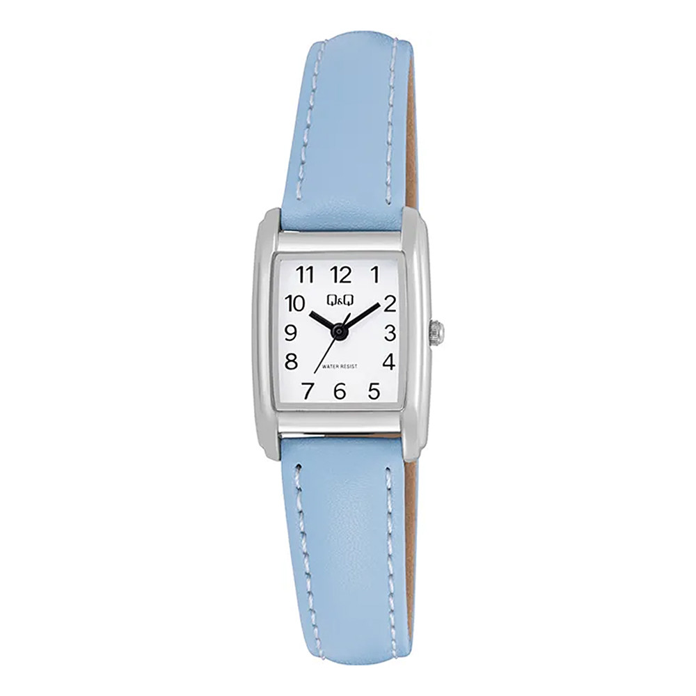 Q&Q női karóra, quartz, ezüst színű fémtok, fehér színű számlap, kék színű bőrszíj Q44C-002PY
