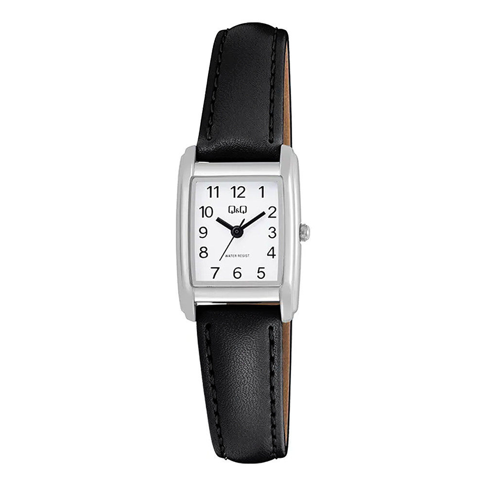 Q&Q nöi karóra, quartz, ezüst színű fémtok, fehér színű számlap, fekete színű bőrszíj Q44C-011PY