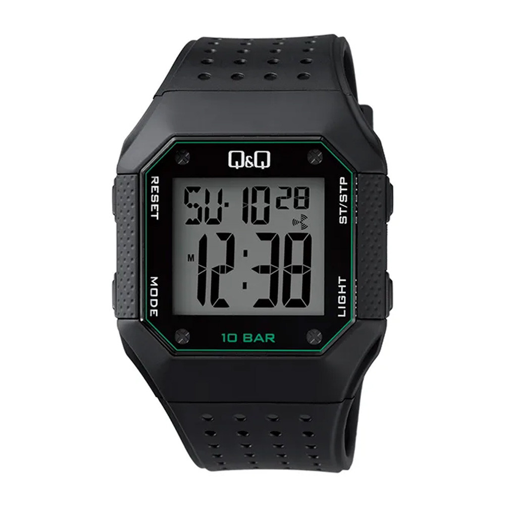 Q&Q Digitális Férfi Sportóra – Fekete Műanyag Tokkal, Számos Funkcióval és 10 Bar Vízállósággal