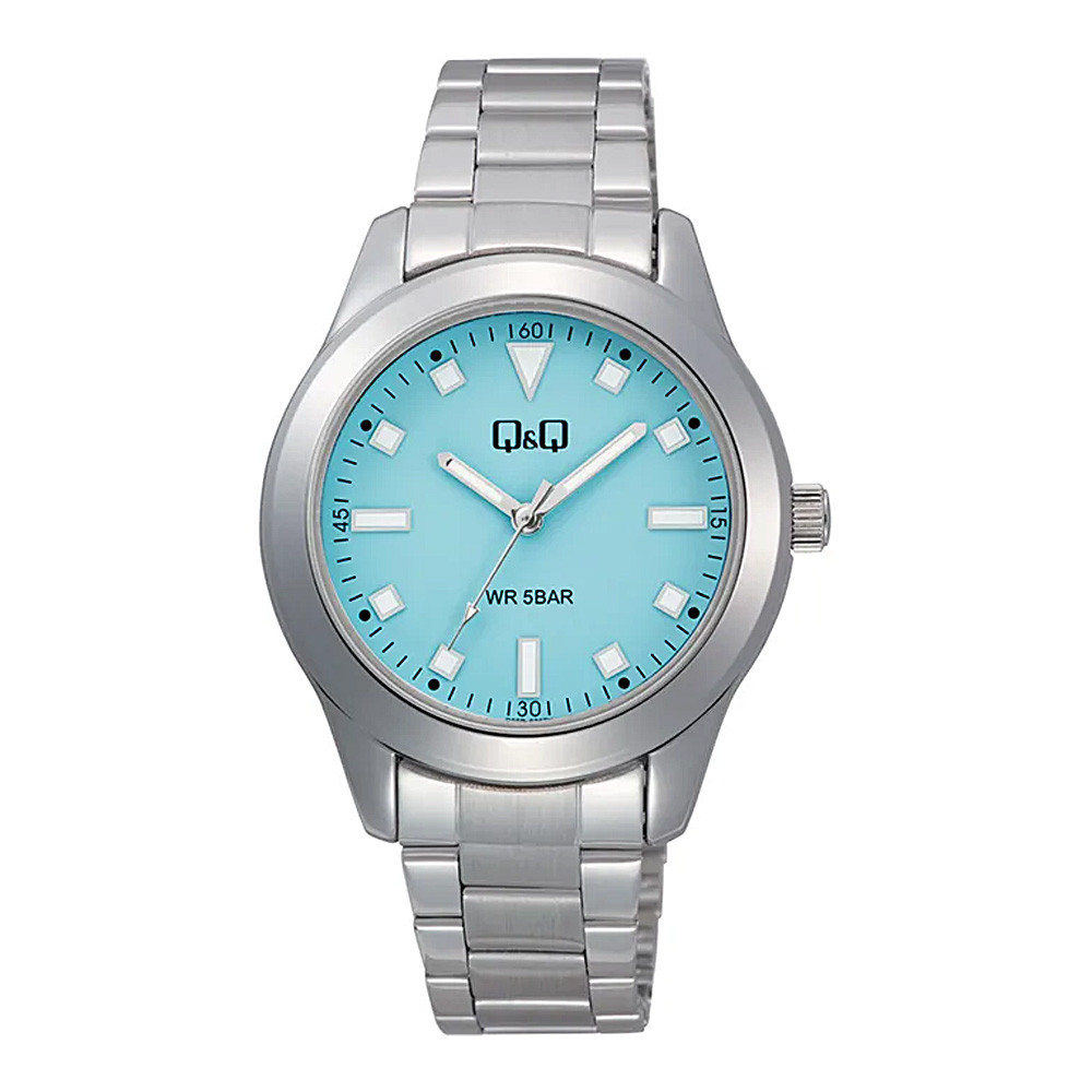Q&Q női karóra, ezüst színű fémtok, ezüst színű nemesacél csat, kék számlap, Q35B-008PY