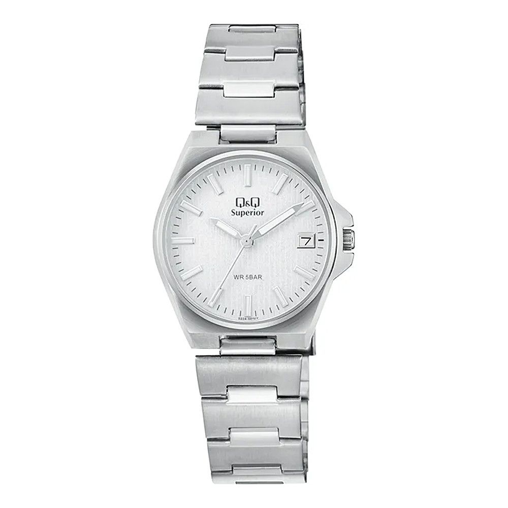 Q&Q női karóra, ezüst színű nemesacél tok, ezüst színű nemesacél csat, ezüst számlap, (Superior), S22A-001VY