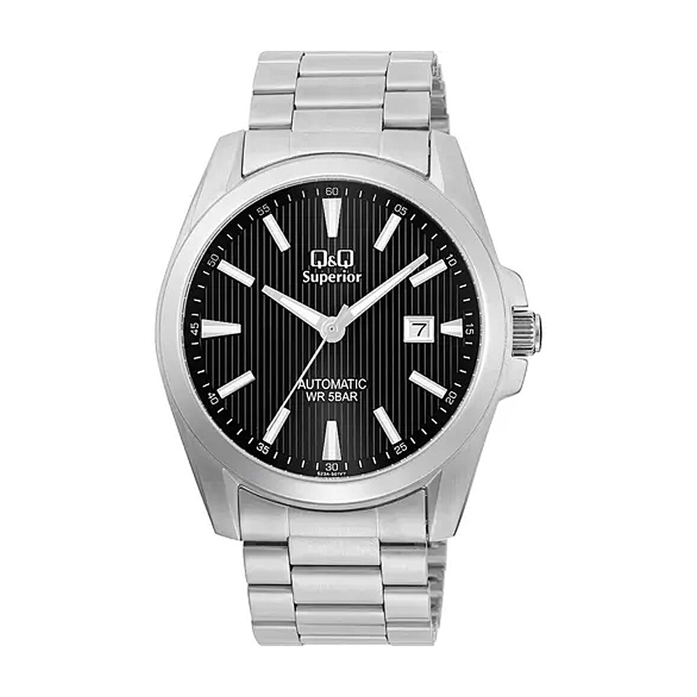 Q&Q férfi AUTOMATA karóra, ezüst színű nemesacél tok, ezüst színű nemesacél csat, fekete számlap, (Superior), S23A-501VY