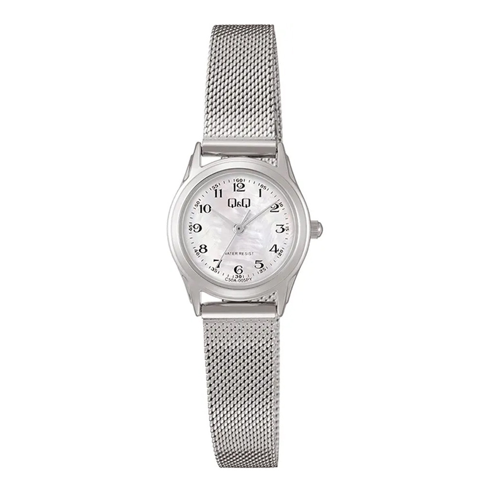 Q&Q nő karóra, ezüst színű fémtok, gyöngyház színű számlap, ezüst színű fémcsat C50A-005PY