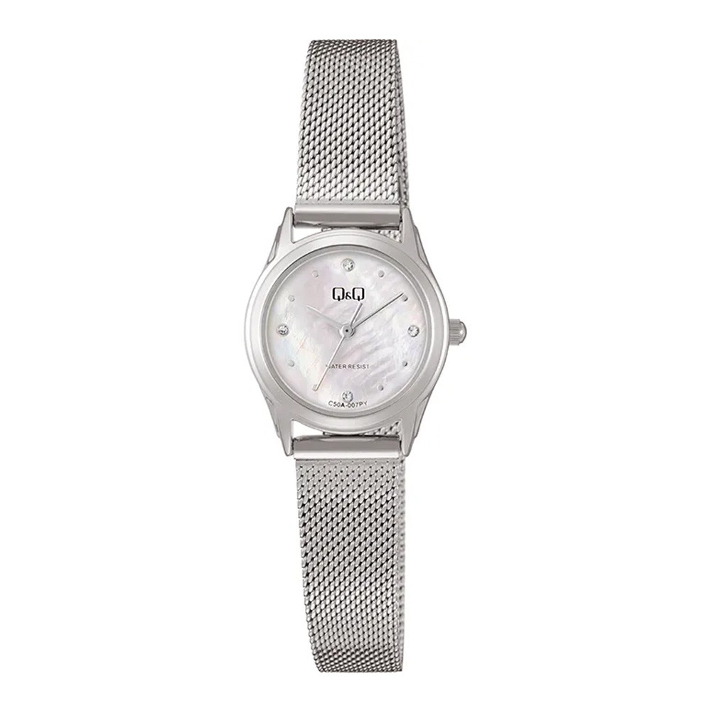 Q&Q női karóra, ezüst színű fémtok, gyöngyház színű számlap, ezüst színű fémcsat C50A-007PY