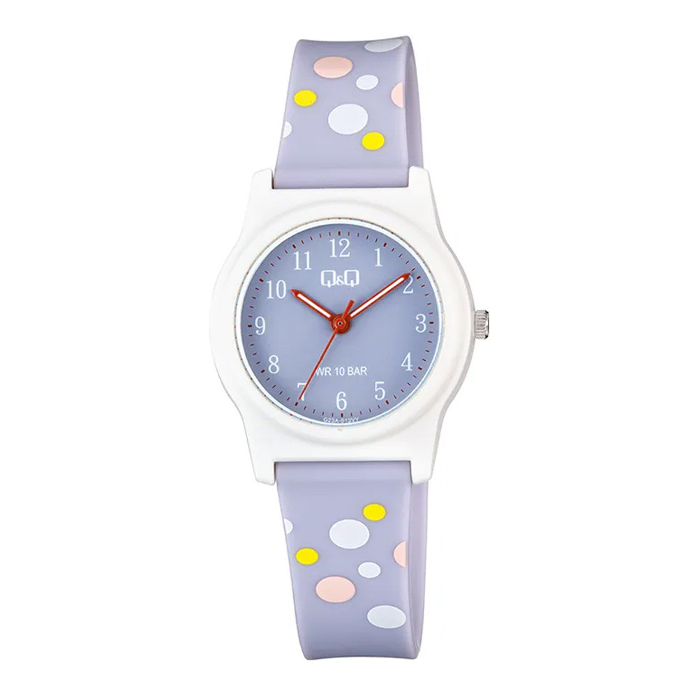Q&Q karóra, quartz, fehér színű műanyag tok, lila színű számlap, lila műanyag szíj, G23A-013VY