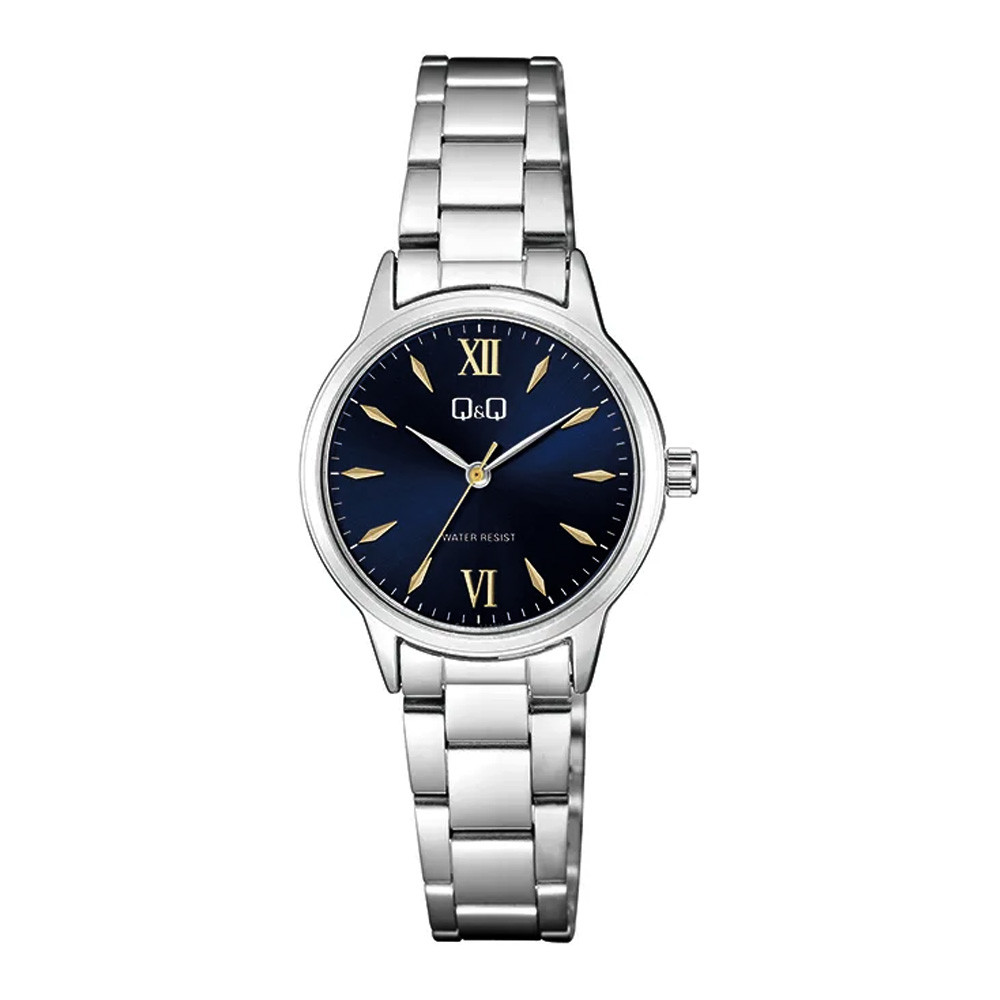 Q&Q női karóra, ezüst színű fémtok, kék színű számlap, ezüst színű fémcsat Q11A-002PY