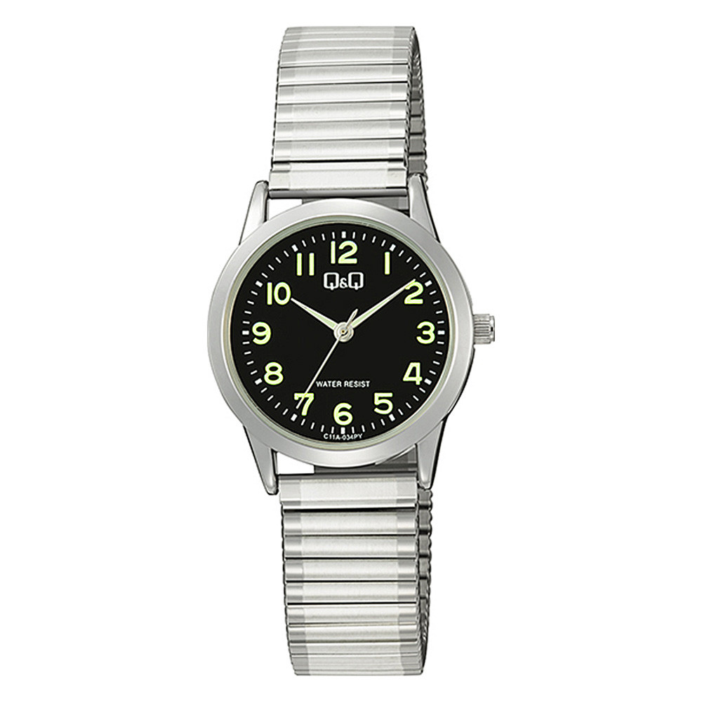 Q&Q női karóra, quartz, ezüst színű fémtok, ezüst színű rugóscsat, fekete számlap C11A-034PY