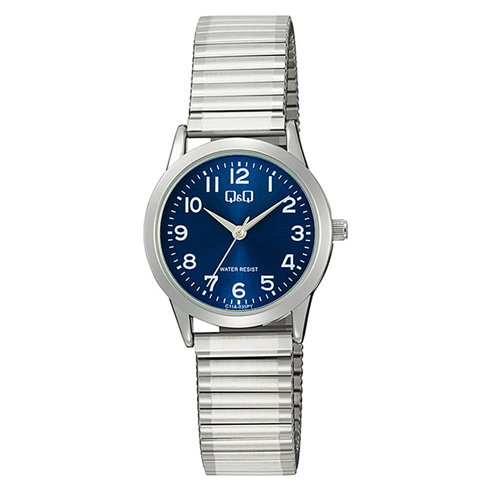 Q&Q női karóra, quartz, ezüst színű fémtok, ezüst színű rugóscsat, kék számlap C11A-035PY
