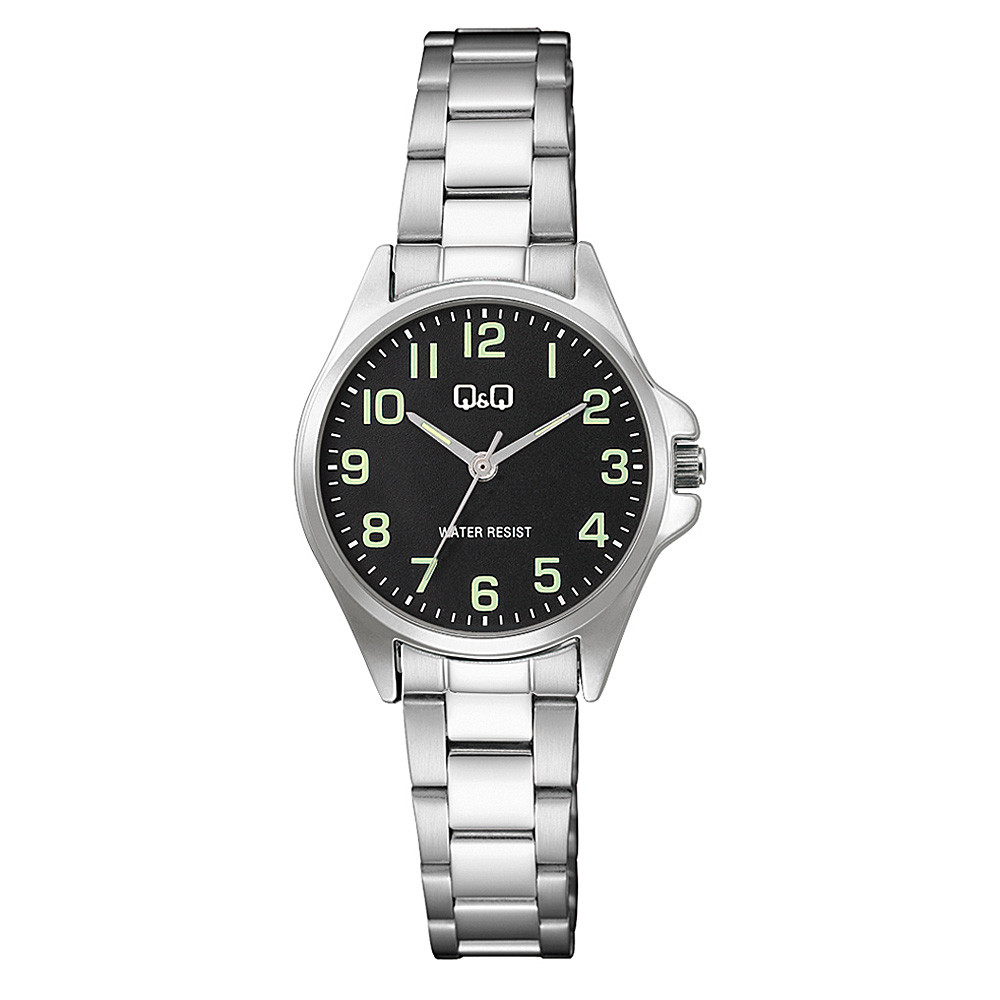 Q&Q női karóra, quartz, ezüst színű fémtok, ezüst színű fémcsat, fekete számlap C37A-006PY