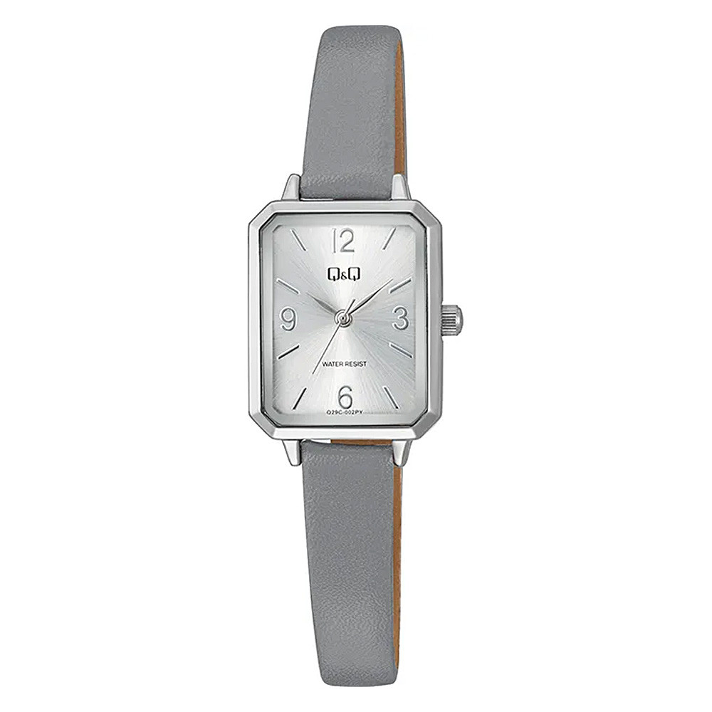 Q&Q női karóra, quartz, ezüst színű fémtok, szürke színű bőrszíj, ezüst számlap, Q29C-002PY