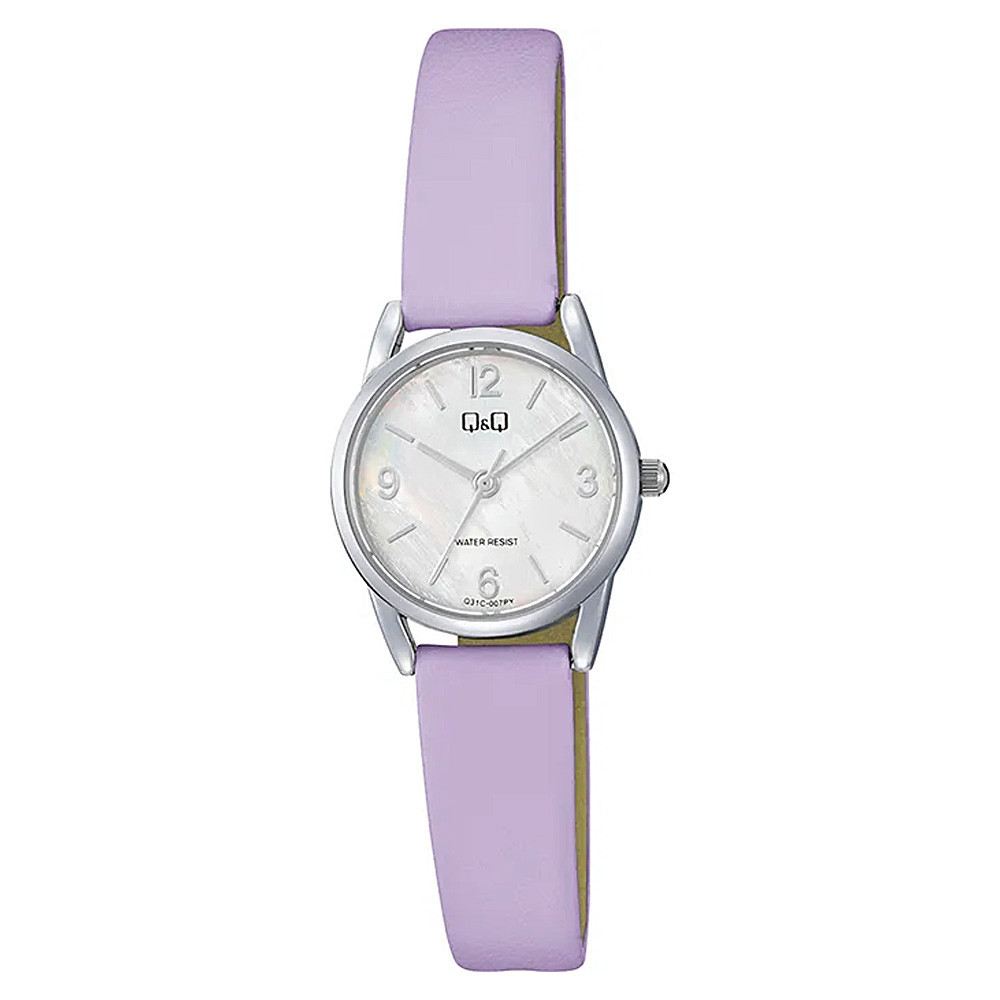 Q&Q női karóra, quartz, ezüst színű fémtok, lila színű bőrszíj, gyöngyház színű számlap Q31C-007PY
