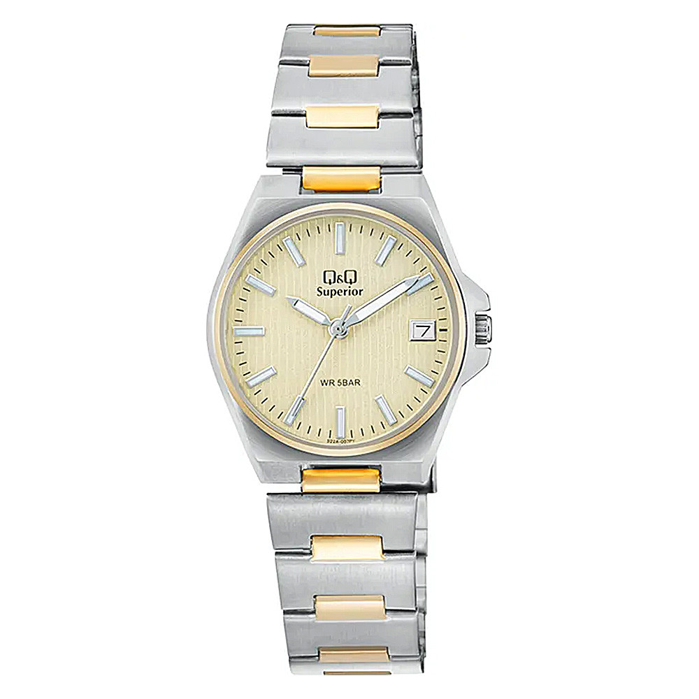 Q&Q női karóra, quartz, bicolor színű nemesacél tok, bicolor színű nemesacél csat, arany számlap (Superior) S22A-007PY