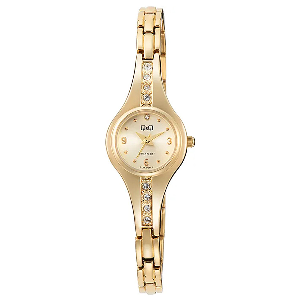 Q&Q női ékszeróra, quartz, arany színű fémtok, arany színű fémcsat, arany színű számlap, F13A-001PY