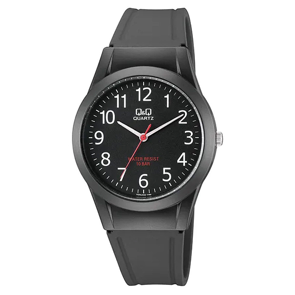 Q&Q férfi karóra, quartz, fekete színű műanyag tok, fekete színű műanyag szíj, fekete színű számlap VQ50J024Y