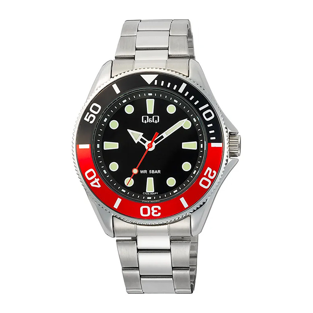 Q&Q férfi karóra, quartz, ezüst színű fémtok, ezüst színű fémcsat, fekete színű számlap C72A-004PY