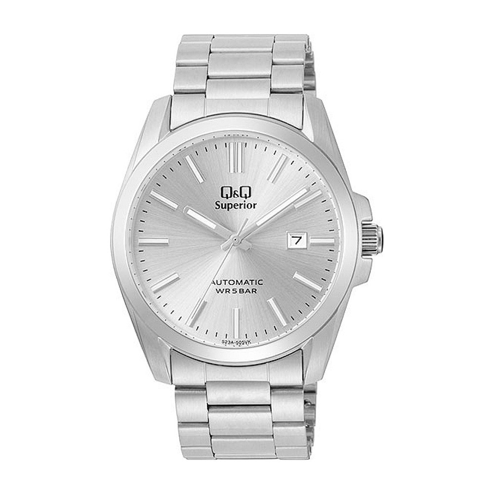 Q&Q férfi automata karóra, ezüst színű nemesacél tok, ezüst színű nemesacél csat, ezüst színű számlap (Superior) 23A-505VK