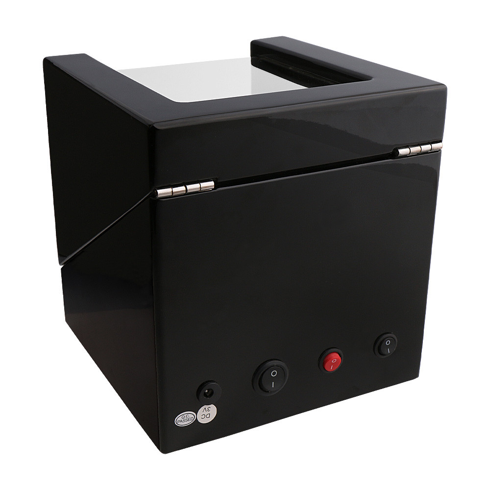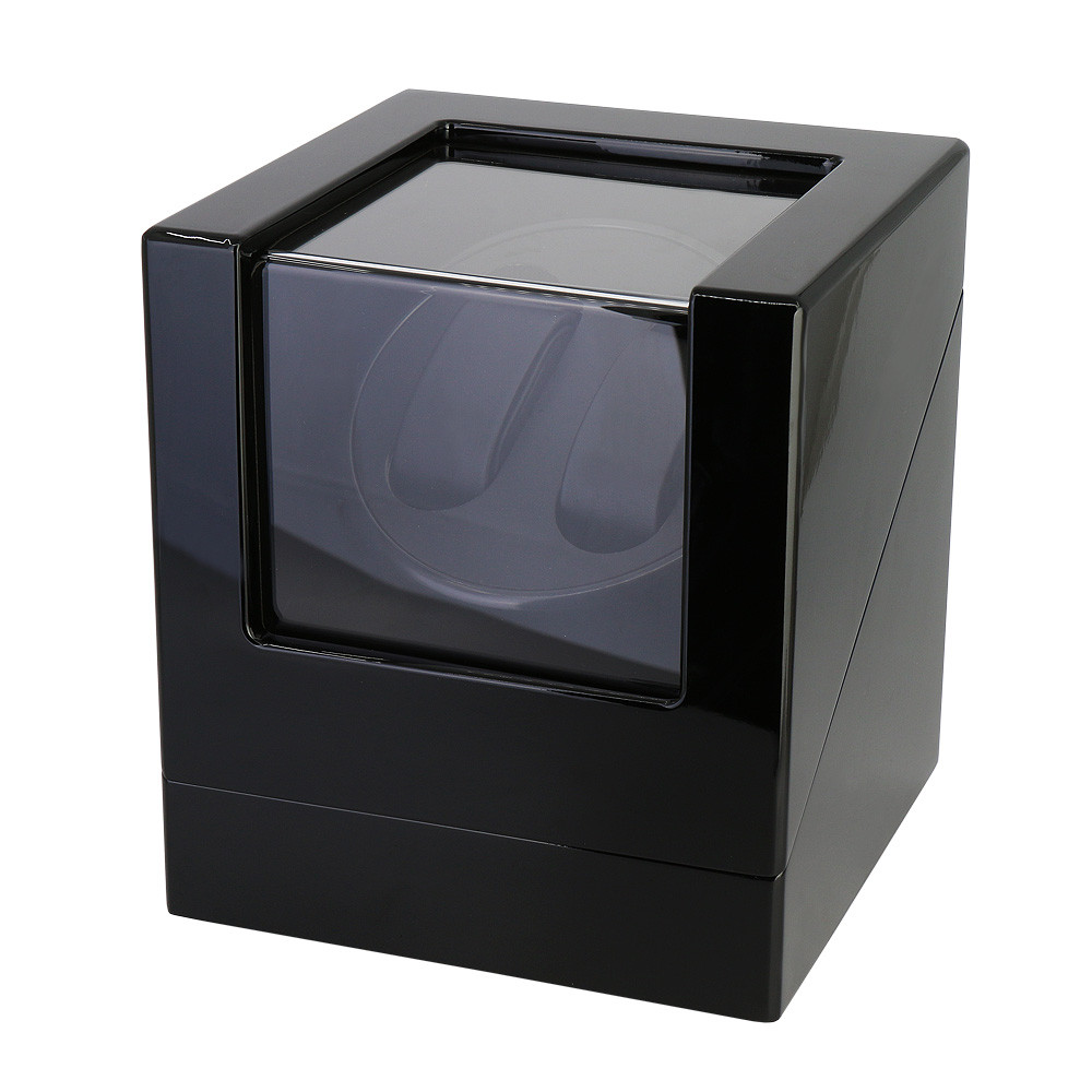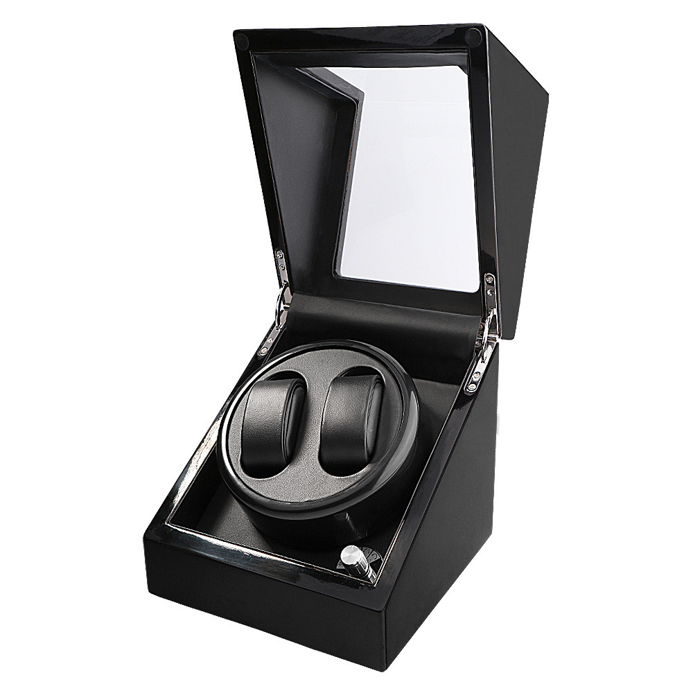 Óraforgató doboz, 2 db karórához, kívül fekete színű festett fényes fa felület, belül fekete színű textil