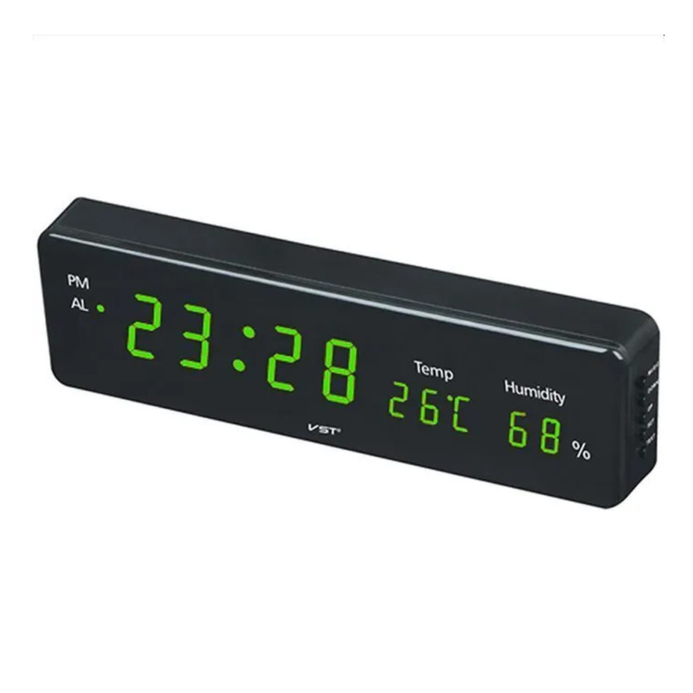 Digitális fali- és asztali óra zöld LED világítással, hőmérővel és páratartalom kijelzéssel