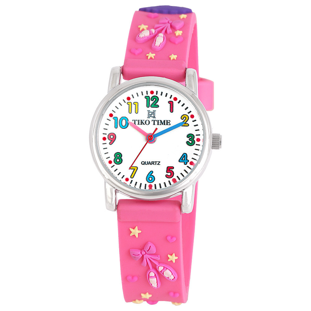 Tiko Time karóra gyerekeknek, ezüst színű fémtok, quartz szerkezet, fehér arab színű számlap, 3D figurás rózsaszín műanyag szíj, cseppmentes vízállóság (tündér kiegészitős)